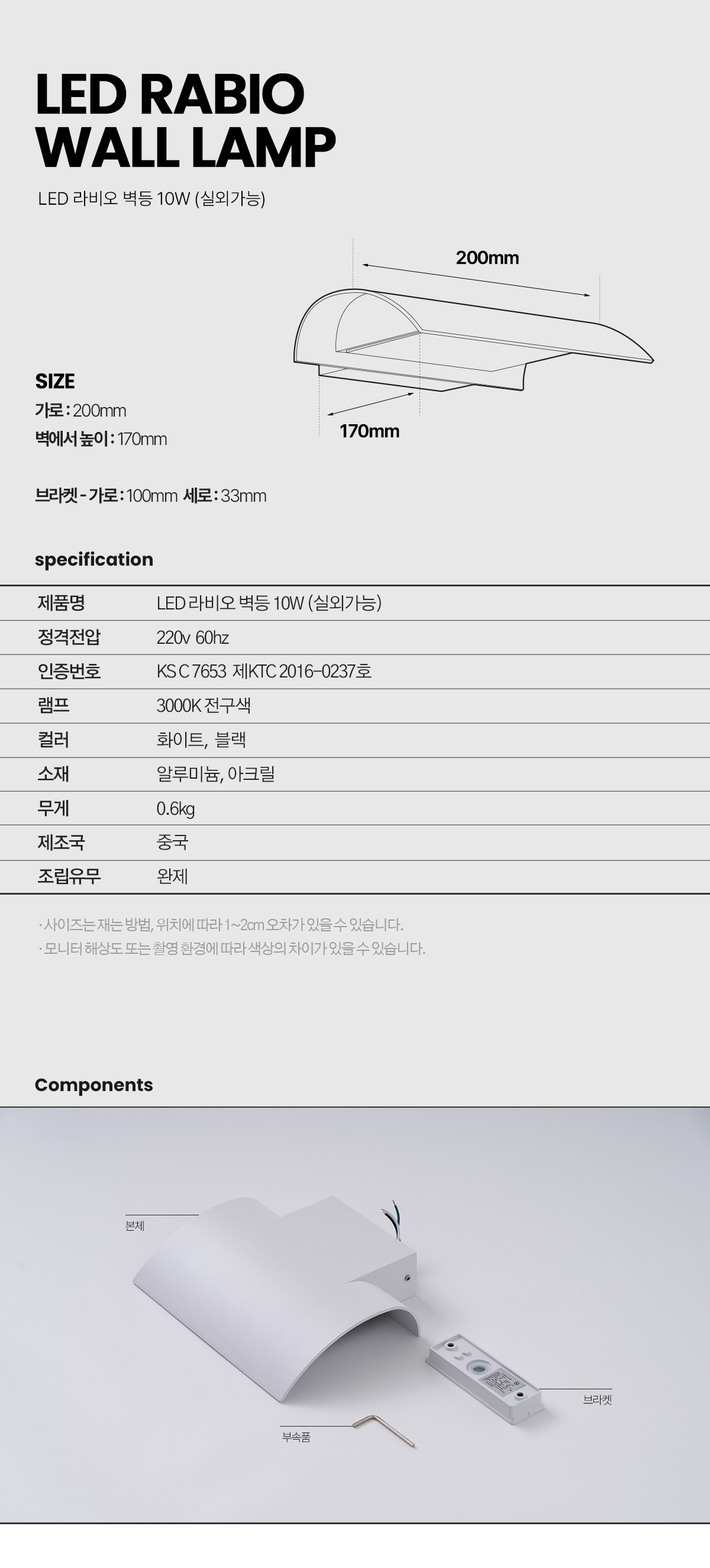 LED 라비오 벽등 10W (실외가능)